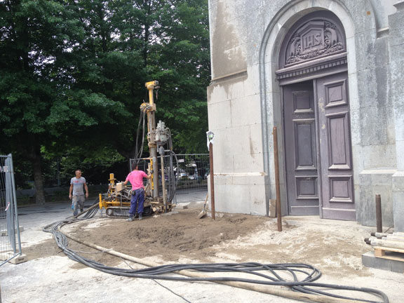 Descrição: Execução de microestacas no interior e no exterior do Mosteiro de S.Torcato, para reforço de fundações